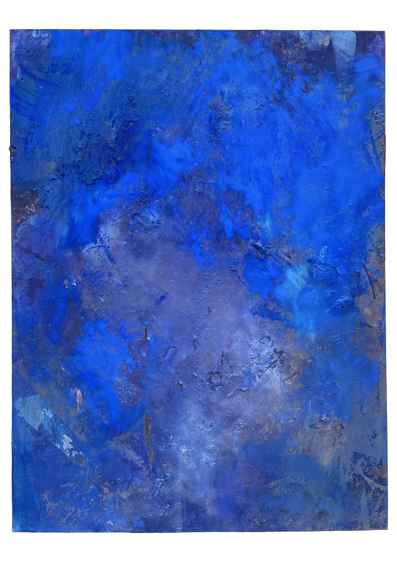 PIGMENT, SEQUINS, IRIDESCENT MEDIUM, PAPER, OIL ON CANVAS